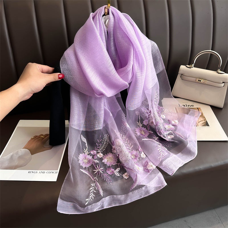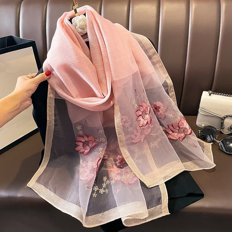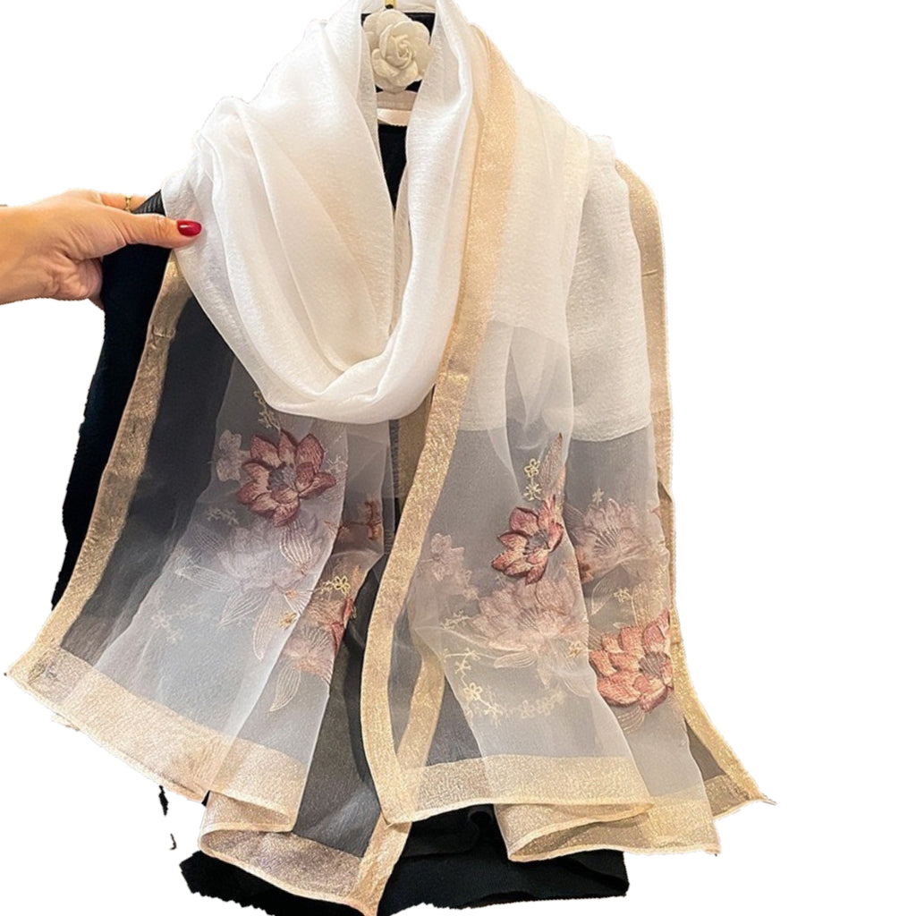Embroidered Scarf Shawl Silk